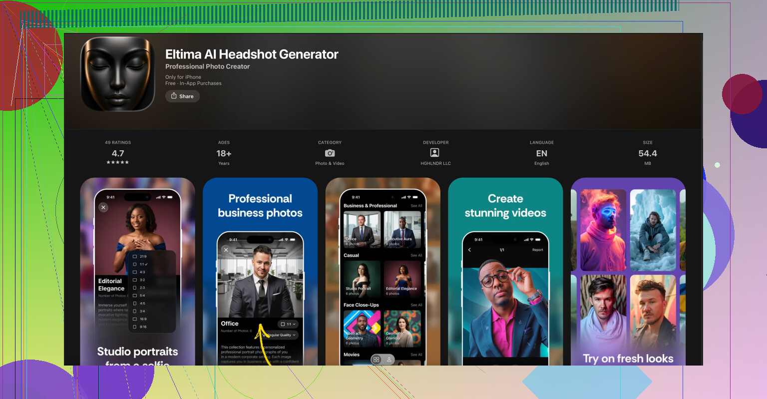 - For profile photos / headshots: the Eltima AI headshot creator for professional iPhone portraits actually exists, has users, and is built specifically to turn regular selfies into LinkedIn-style profile pics