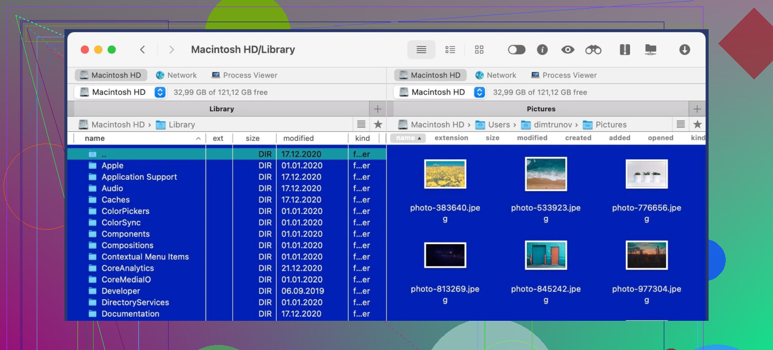 That is where I pulled in Commander One. It’s a dual-pane file manager in the old “commander” style: