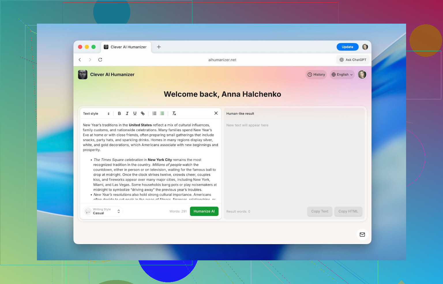 Then click Humanize AI.