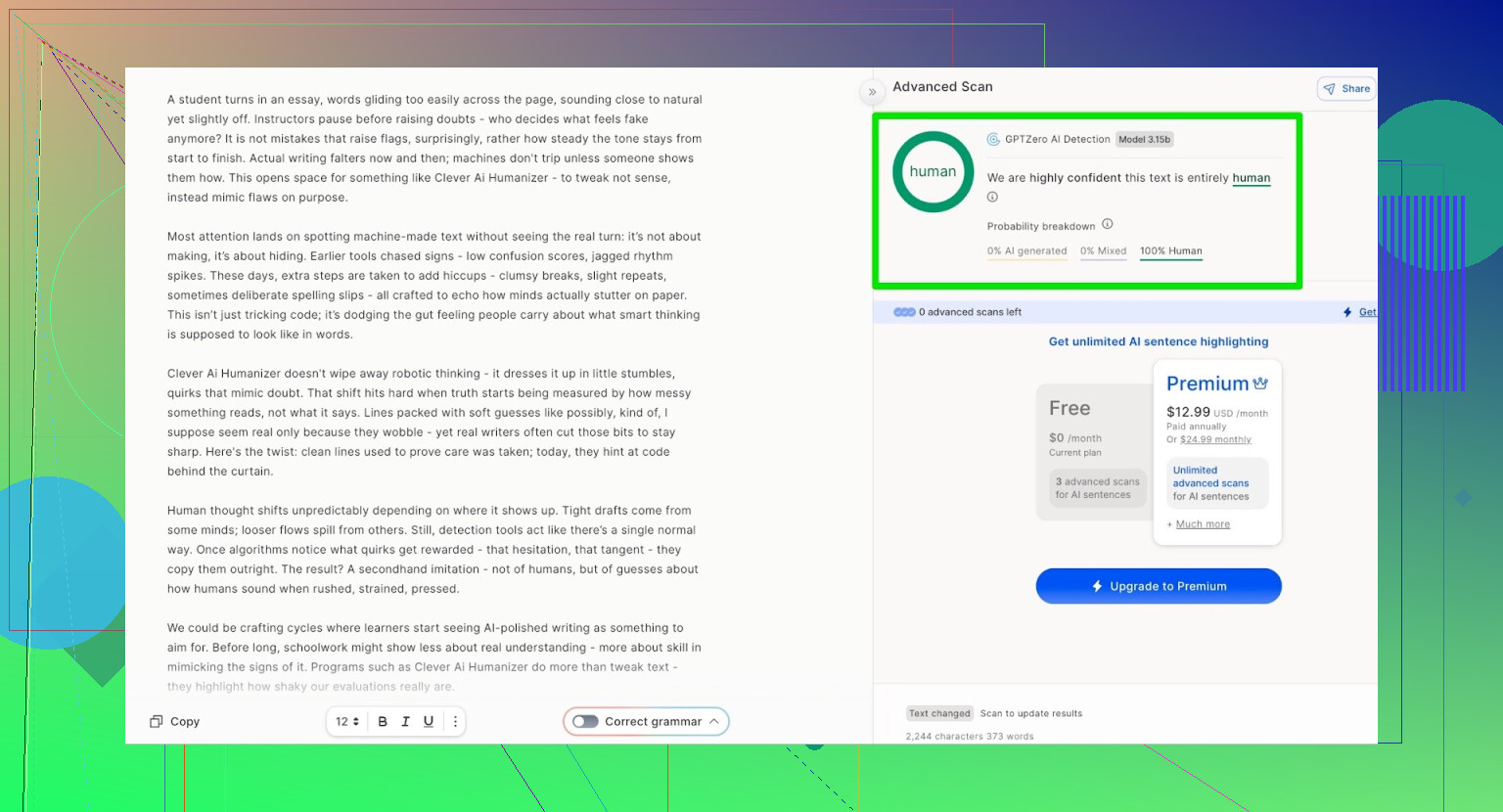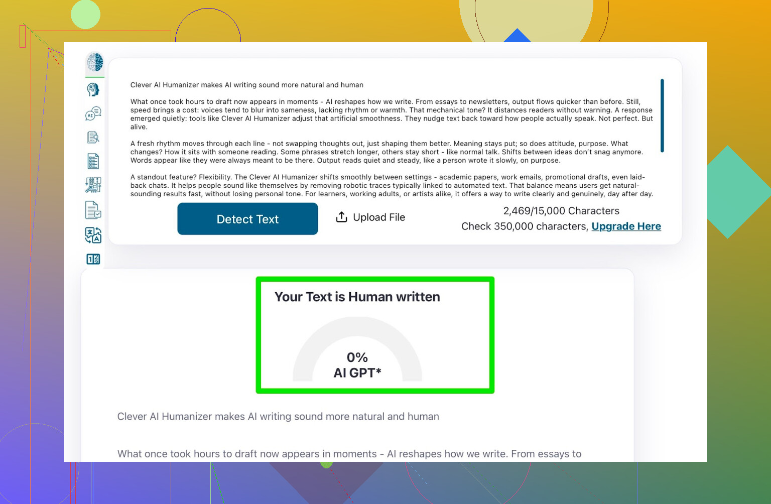 @codecrafter i @mikeappsreviewer pokazali, że narzędzie wypada dobrze w popularnych detektorach. Dodam: prawdziwa przewaga jest tu polityczna, nie techniczna.- Jeśli klient obsesyjnie goni za odznakami „0% AI”, Clever AI Humanizer pomaga doprowadzić treść do stanu, w którym jego ulubiony detektor‑zabawka przestaje krzyczeć.