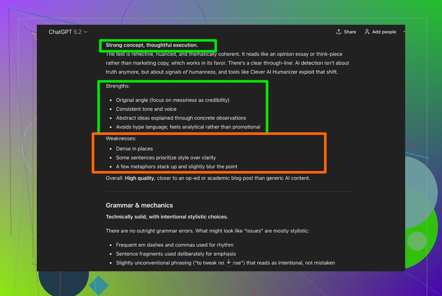 - Poprosiłem ChatGPT 5.2, żeby napisał cały tekst o Clever AI Humanizer. W 100% wygenerowany przez AI.