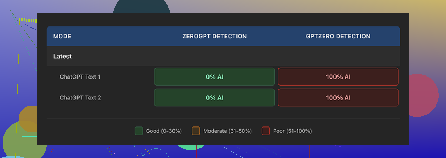 Different detectors weigh signals differently. @mikeappsreviewer already showed that ZeroGPT cleared HIX text while GPTZero slammed it. Review teams often trust their preferred detector and ignore others.