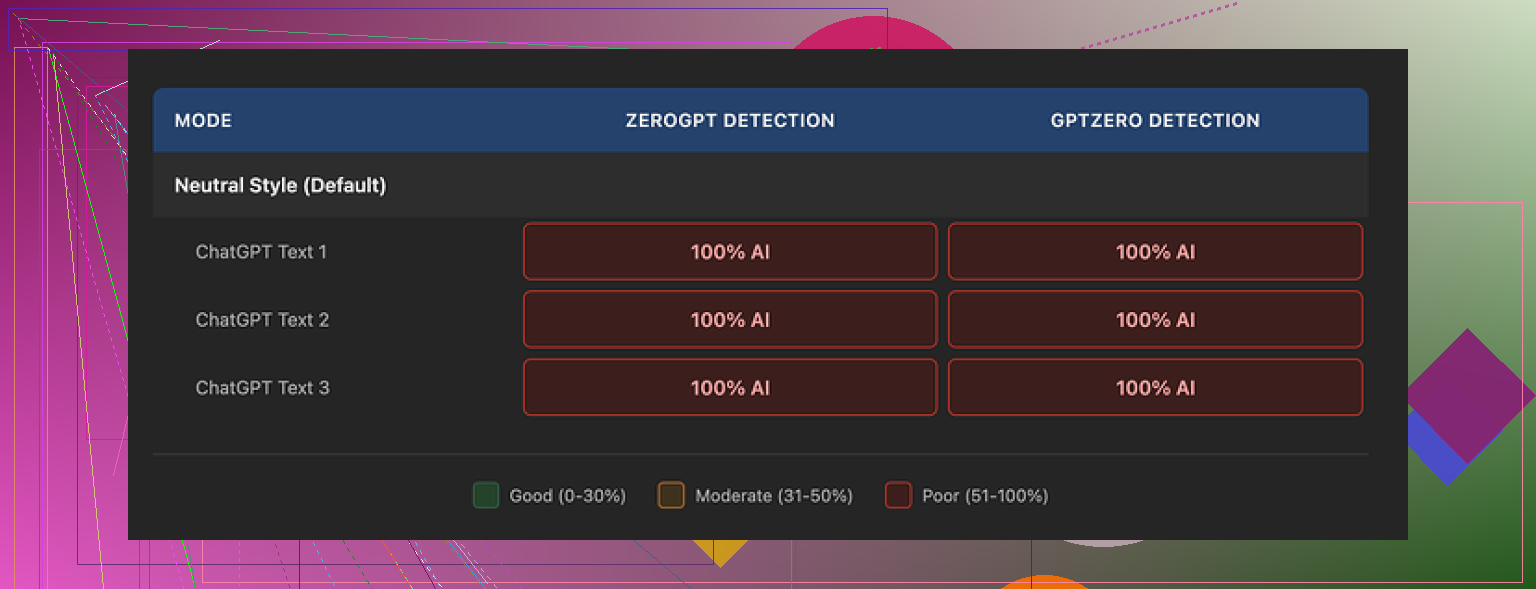 I’ll slightly disagree with how much people focus on detector scores. For school and clients, yes, detection matters. For search rankings, not so much.