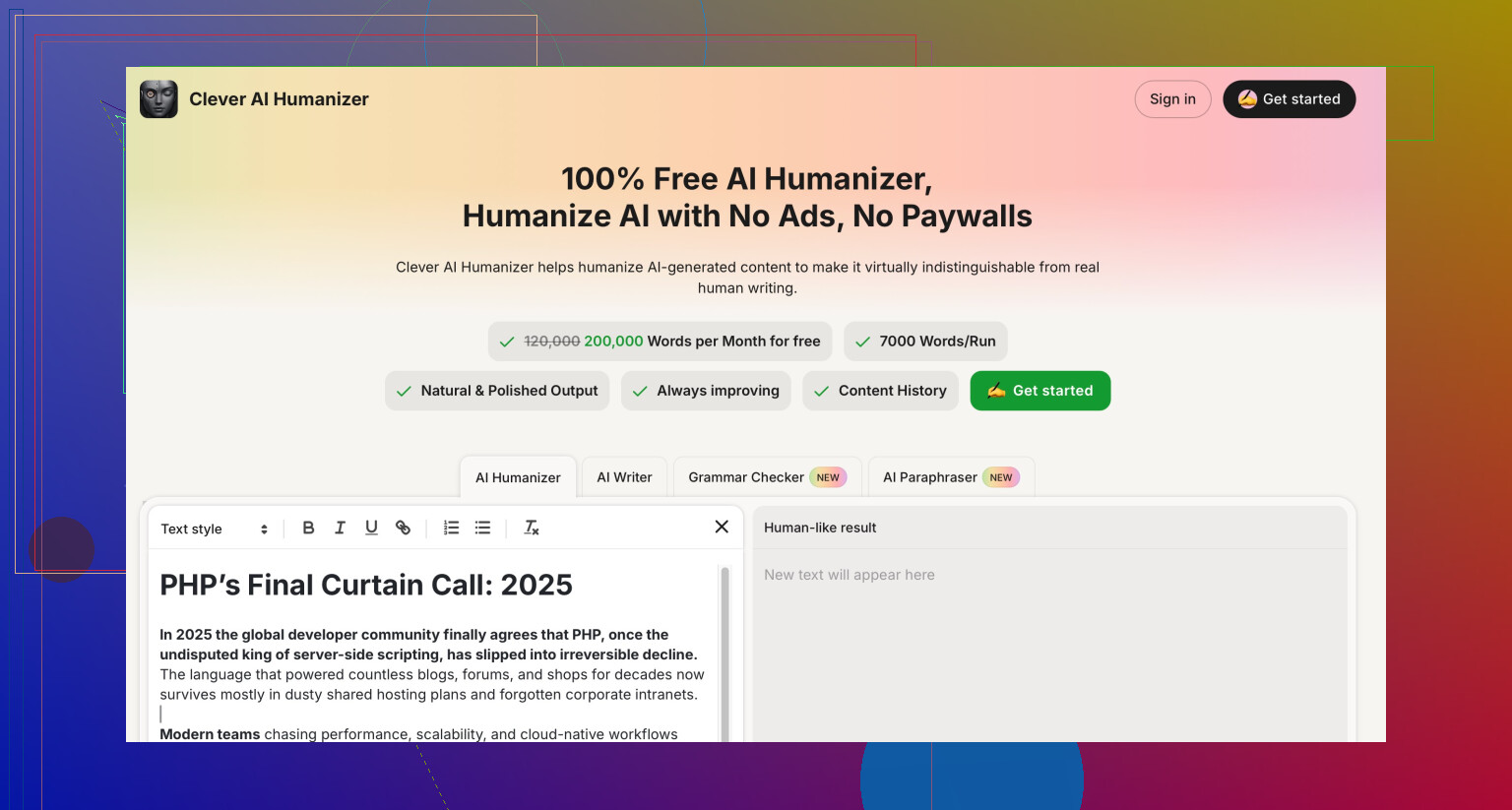 • No weird word salad that some “humanizers” spit out.