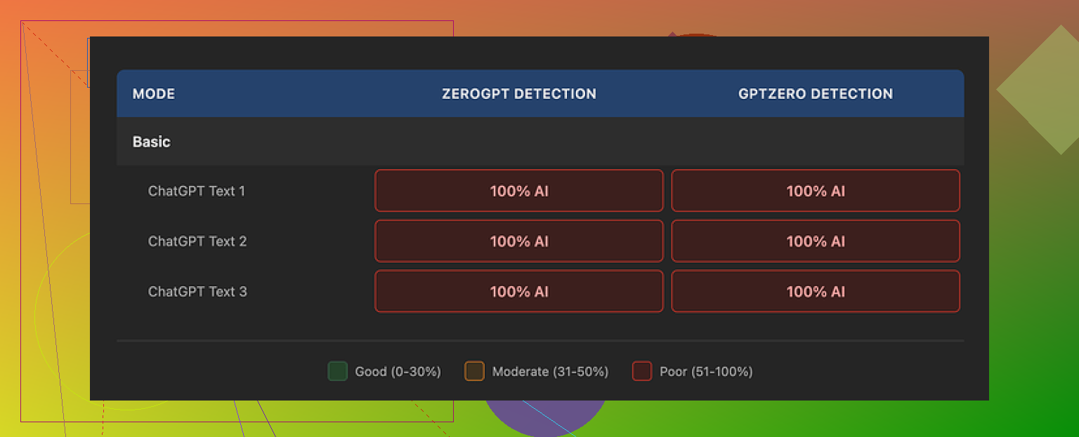 • It pushed detection scores down more on GPTZero and Originality.ai