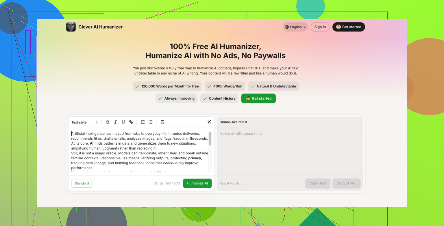 To be totally honest, I’m not 100% convinced that any online “AI humanizer” gets it right all the time, even though @mikeappsreviewer has their pick. Clever Ai Humanizer seems to be scoring points with folks because, well, it’s free and straightforward, but imho, none of these tools fully replace a real human’s touch. I’ve run a few paragraphs through almost every “humanizer” out there – some make the text sound like it’s trying too hard to be your witty friend, others crank out eerily bland stuff that triggers AI detectors anyway.