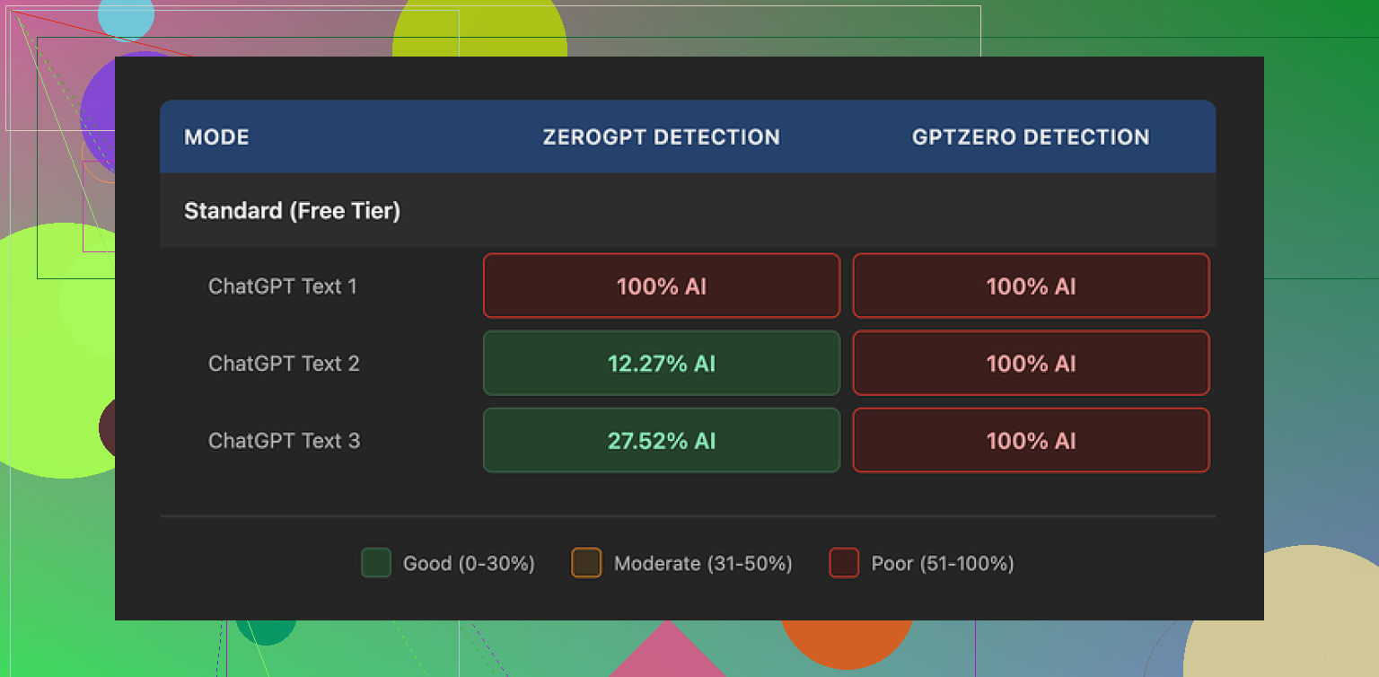 - Detection performance is inconsistent across GPTZero, ZeroGPT, Copyleaks. That randomness is the real problem. You can’t build a reliable workflow on “sometimes it passes, sometimes it doesn’t.”